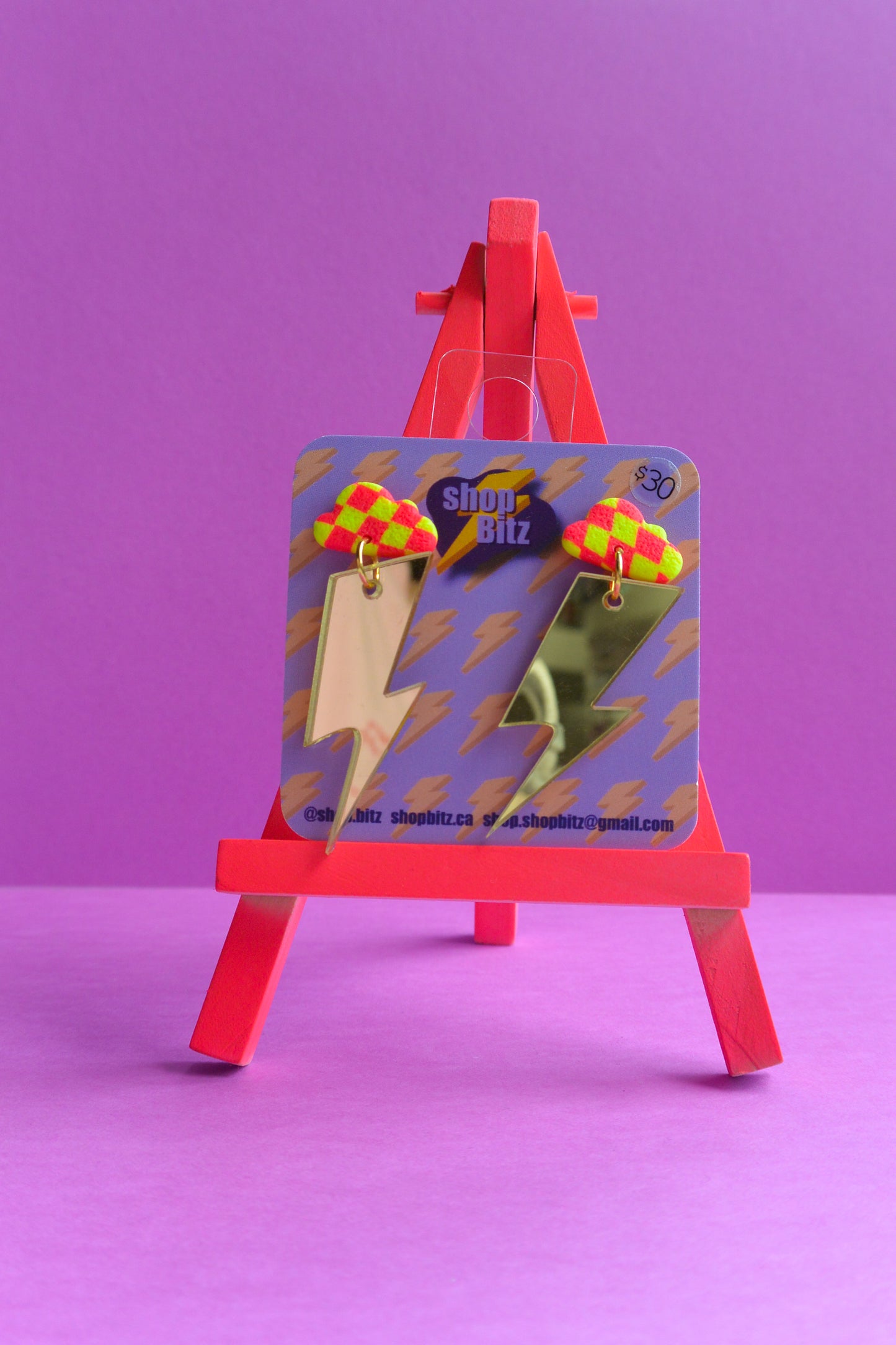 Checkered Cloud Mirrored Gold Lightning Bolts
