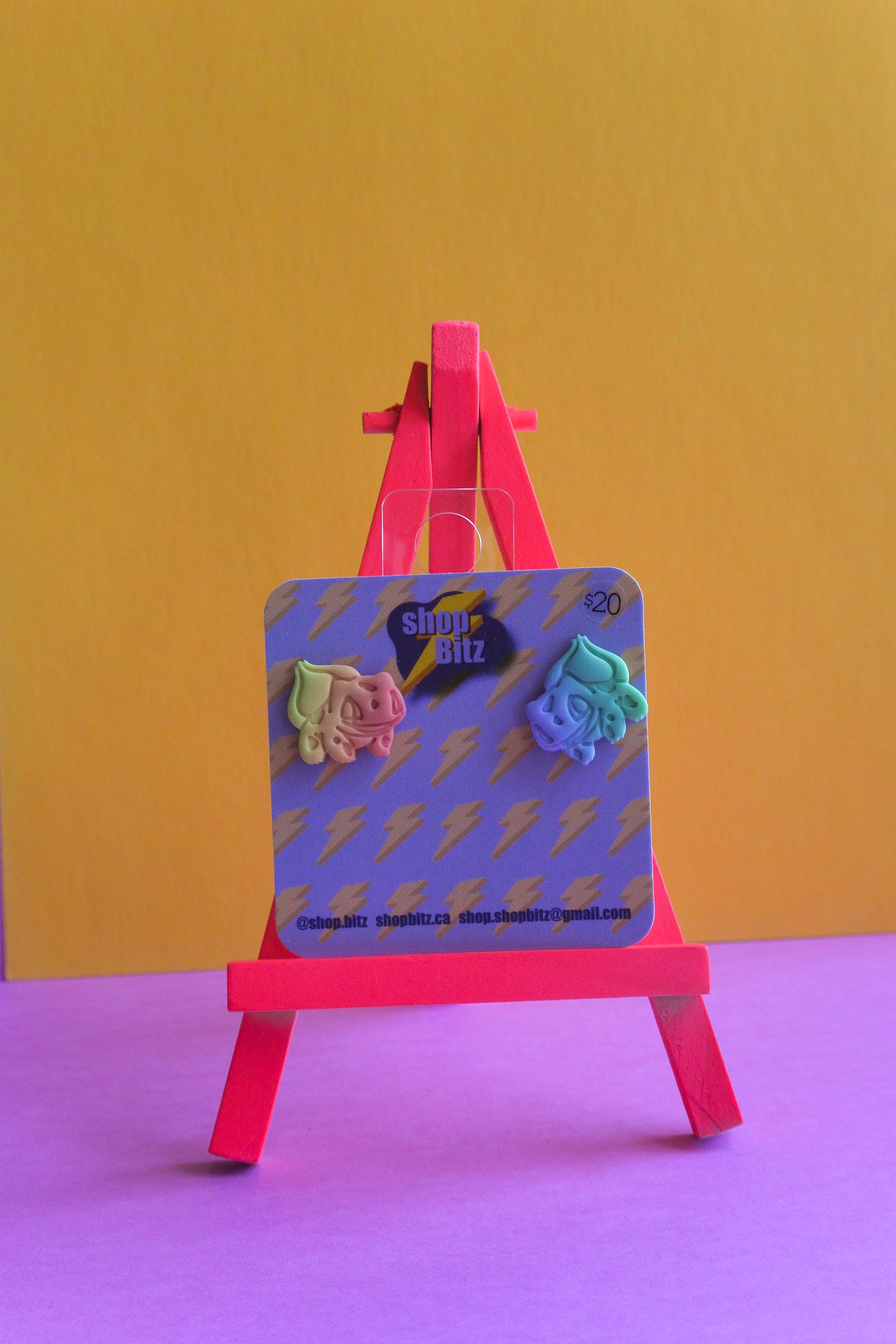 Earrings made with polymer clay, set on nickel free stainless steel findings. As item is handmade, there may be slight variations to product.