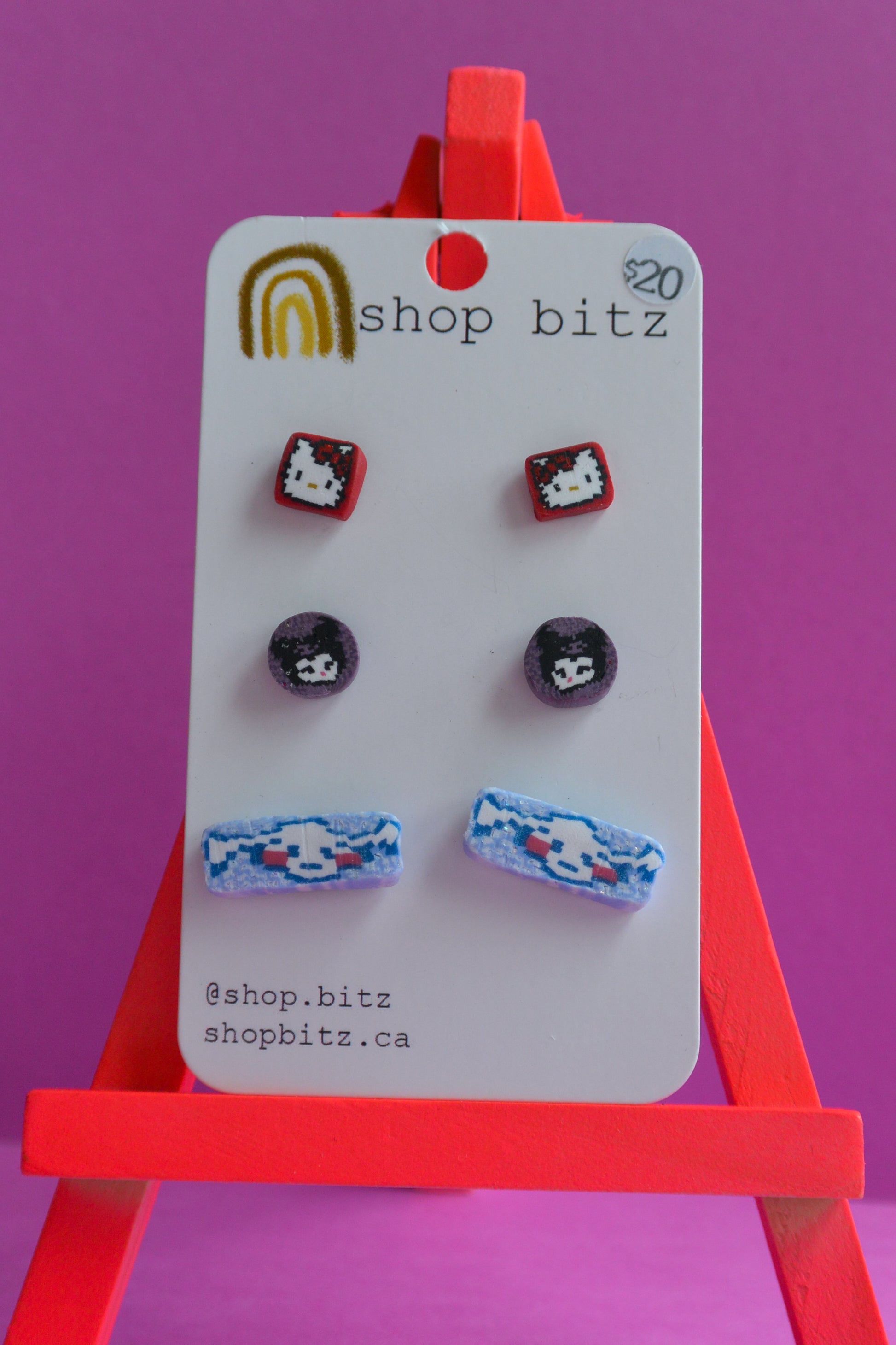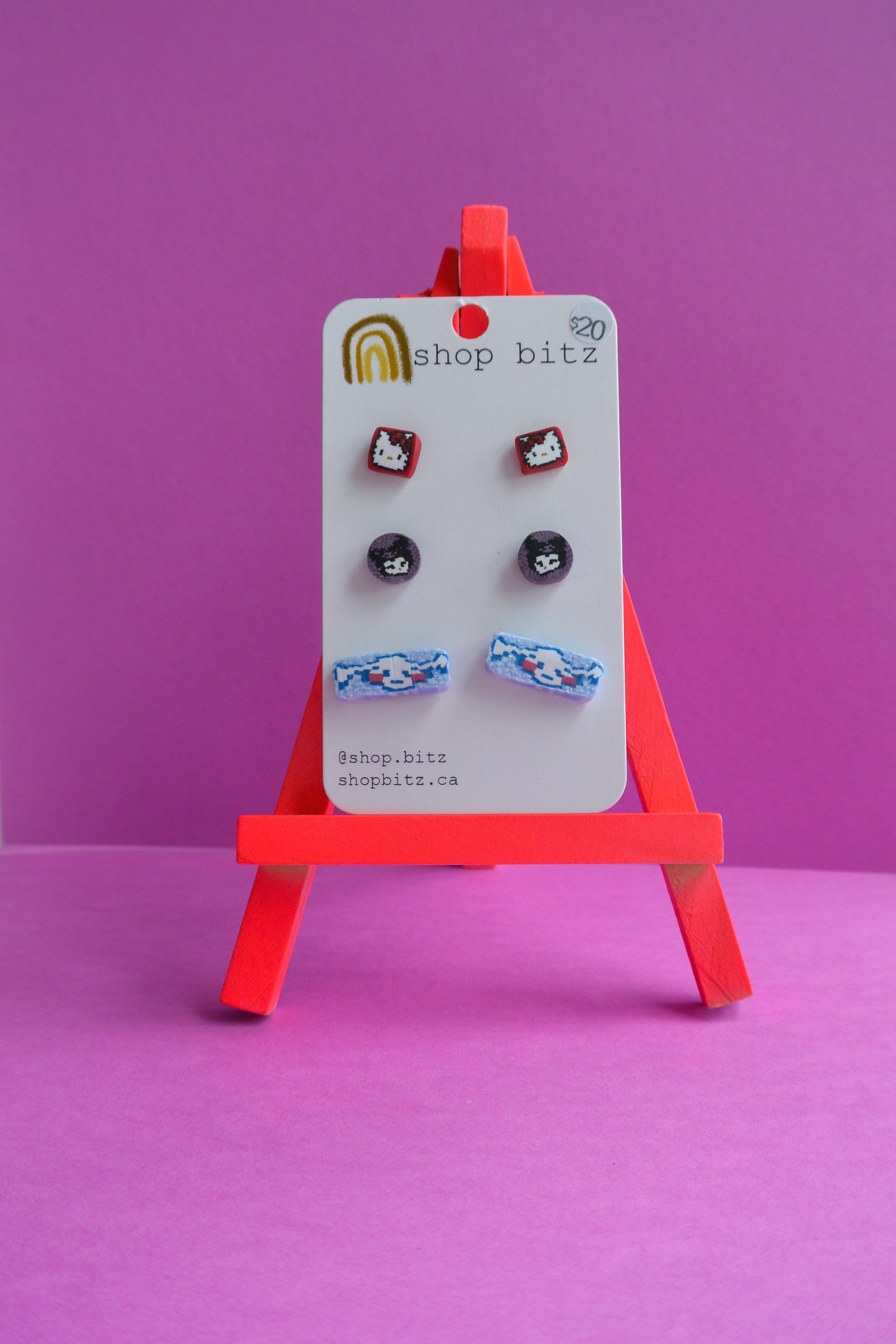 Earrings made with polymer clay, set on nickel free stainless steel findings. As item is handmade, there may be slight variations to product.