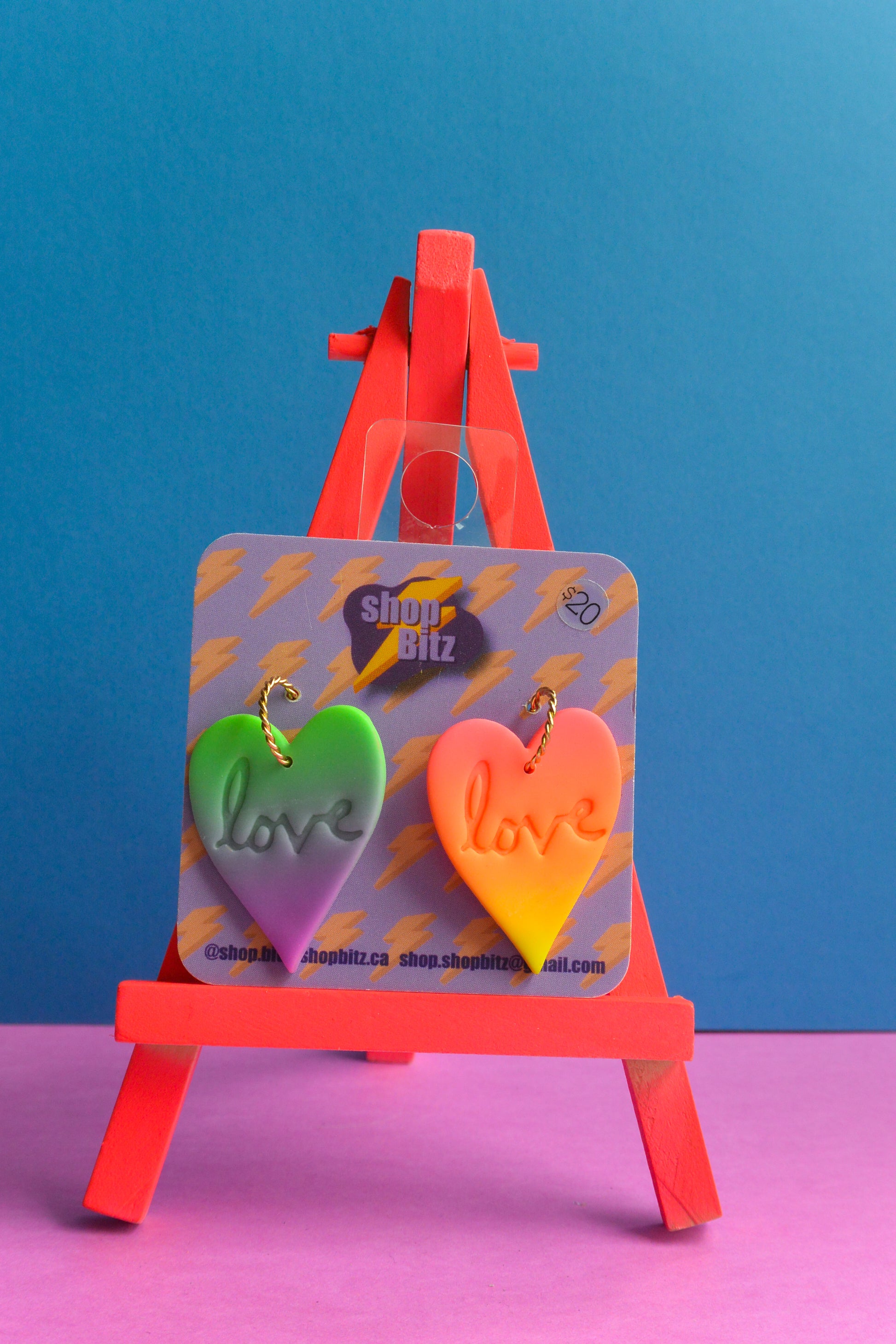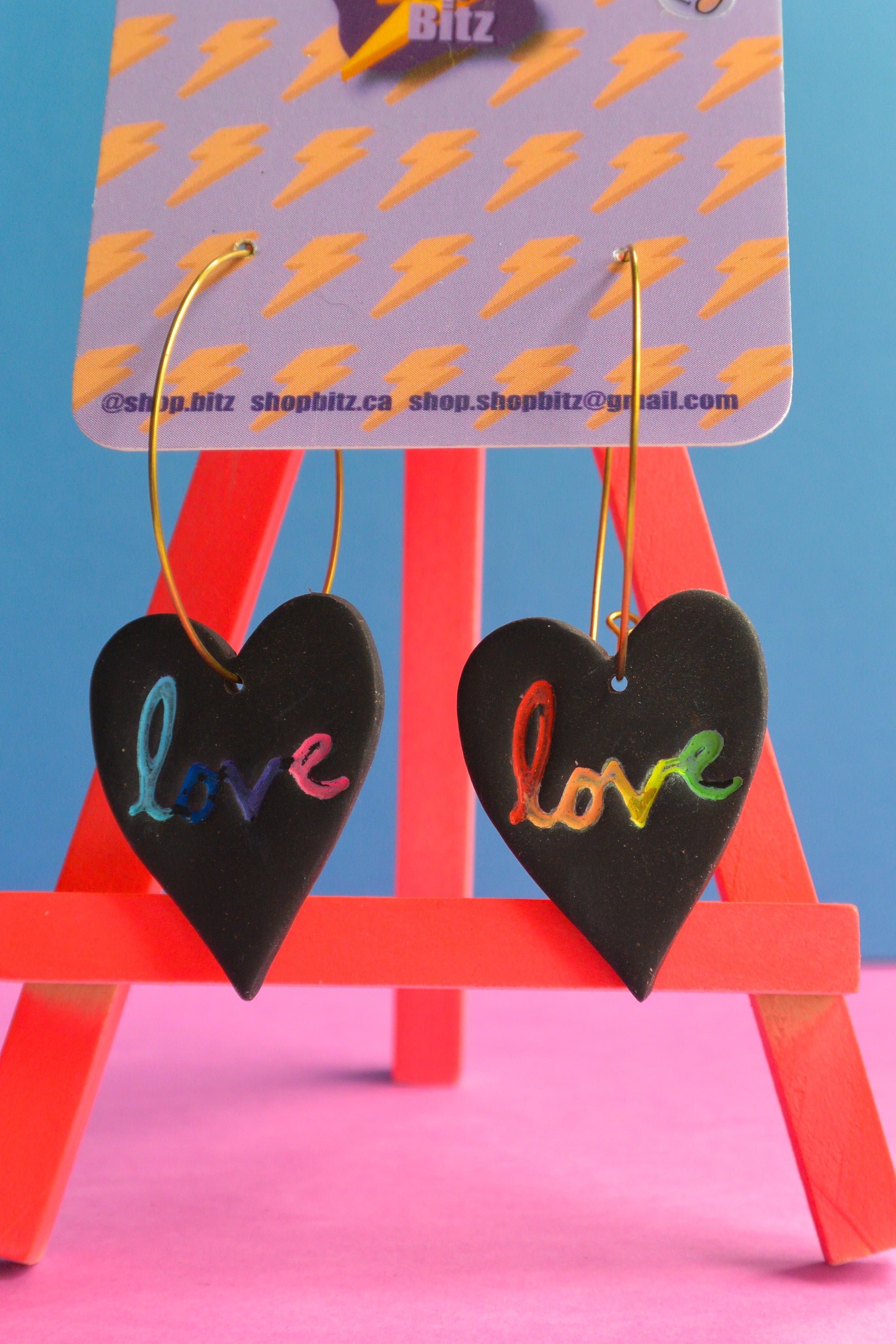 Earrings made with polymer clay, set on nickel free stainless steel findings. As item is handmade, there may be slight variations to product.