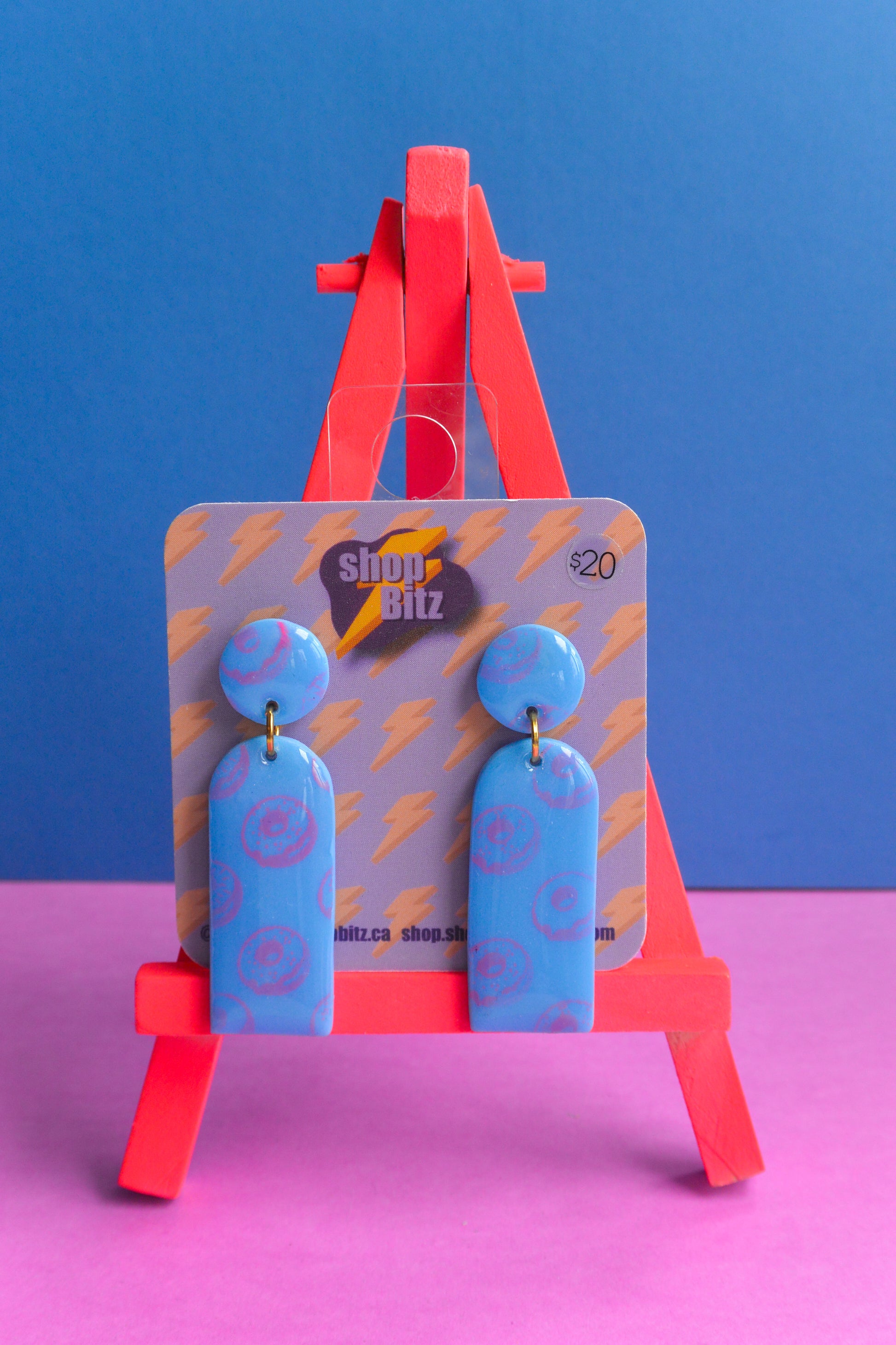 Earrings made with polymer clay, set on nickel free stainless steel findings with a resin top coat. As item is handmade, there may be slight variations to product.