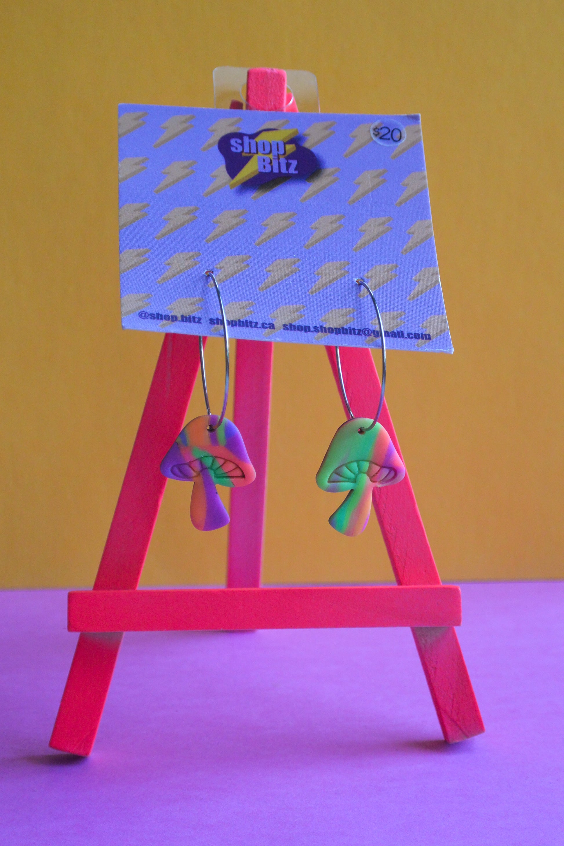 Earrings made with polymer clay, set on nickel free stainless steel findings. As item is handmade, there may be slight variations to product.