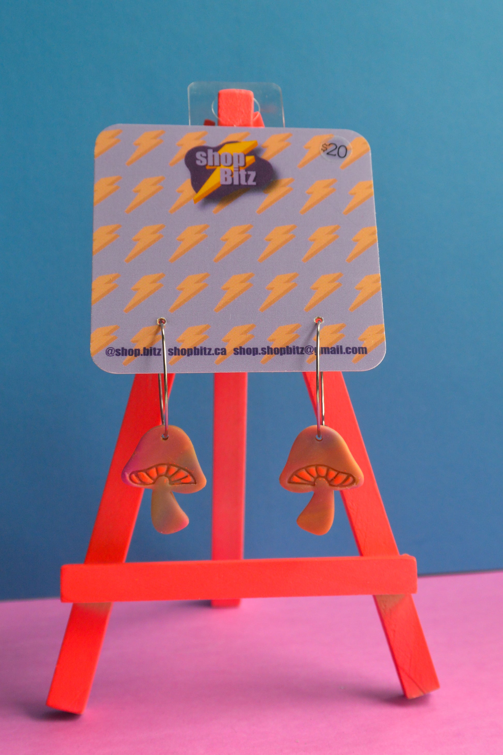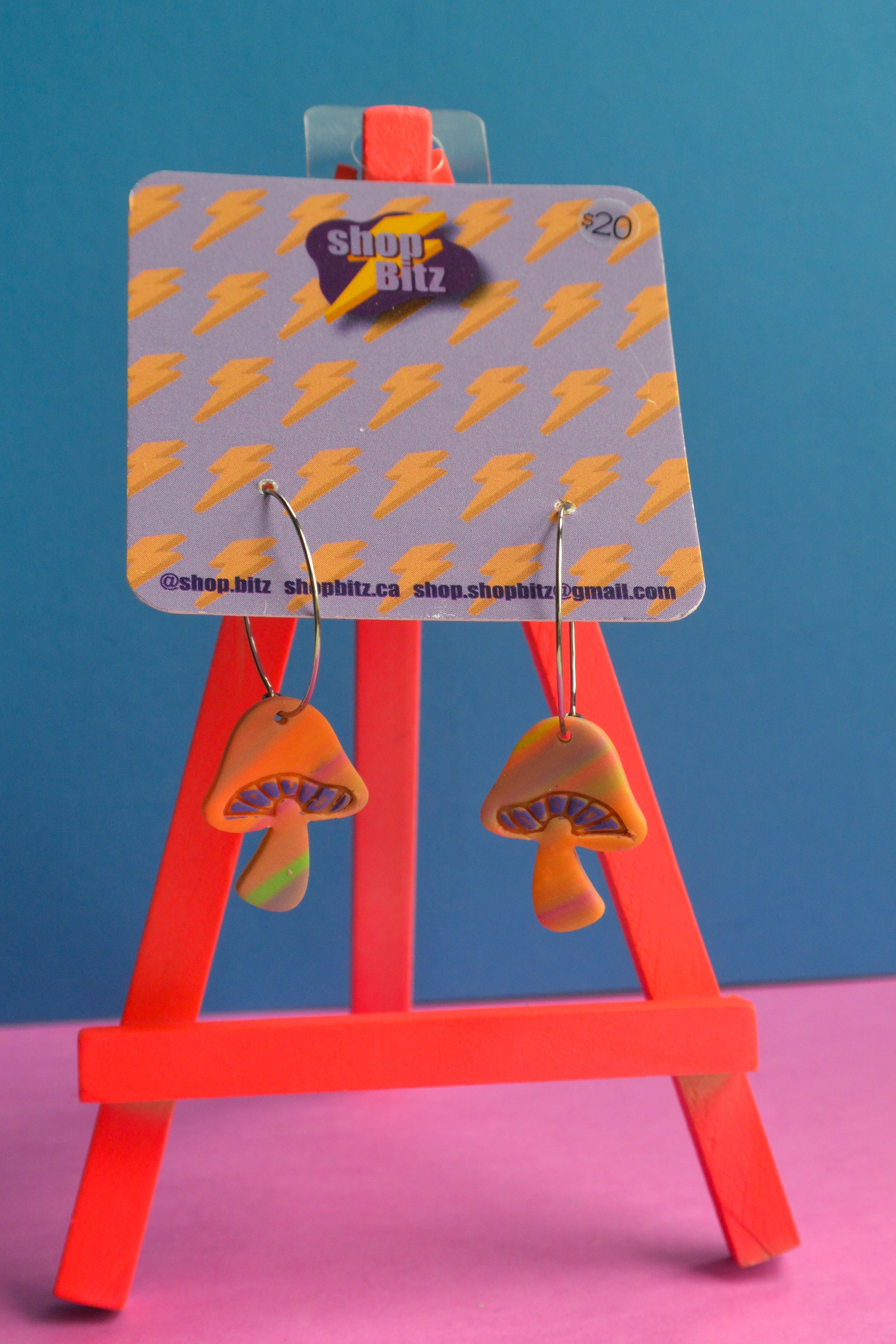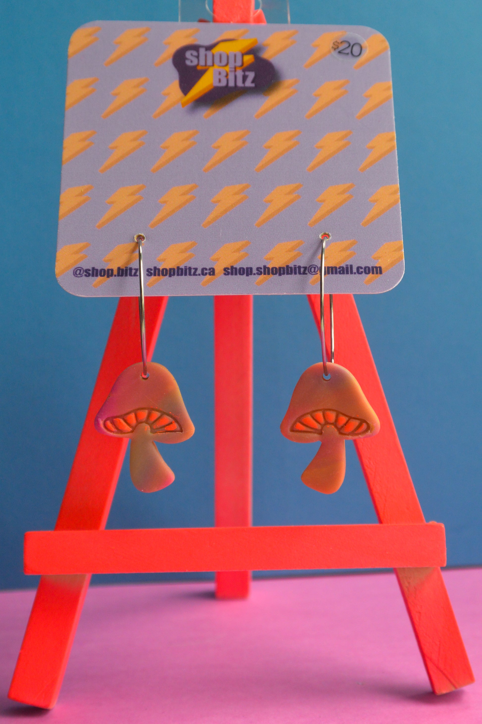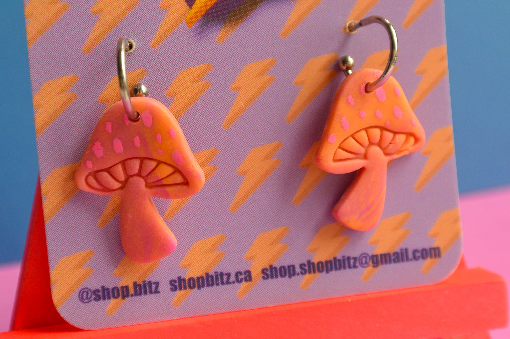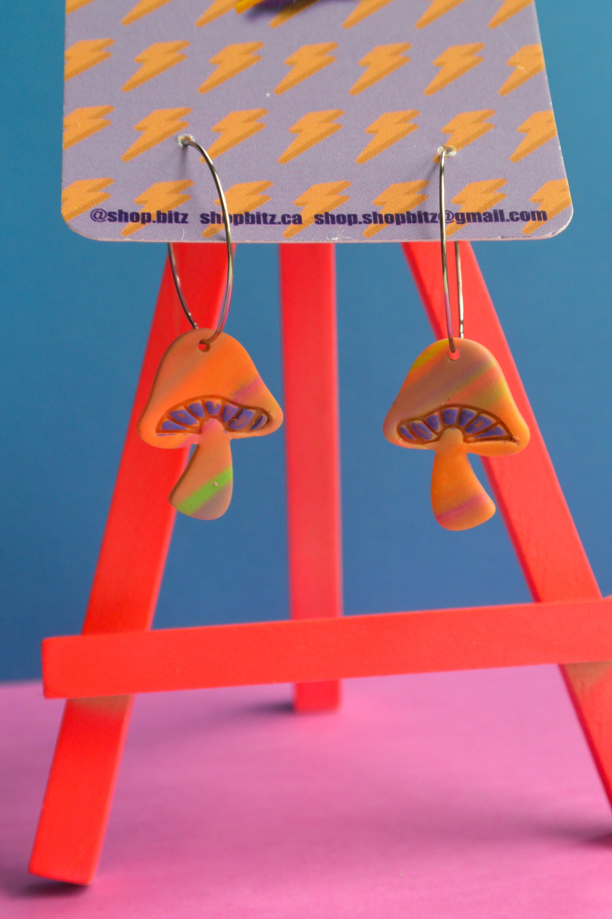 Earrings made with polymer clay, set on nickel free stainless steel findings. As item is handmade, there may be slight variations to product.