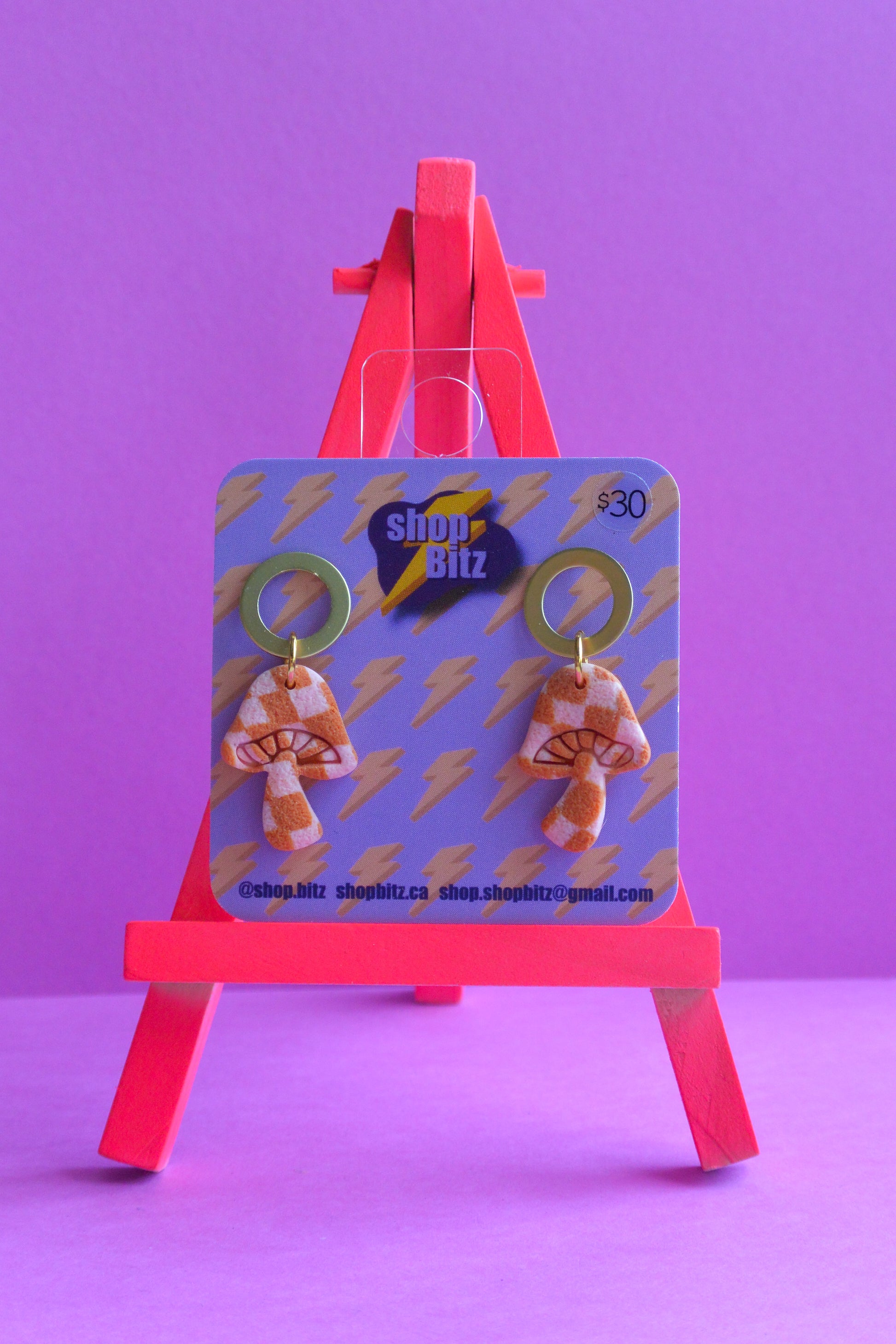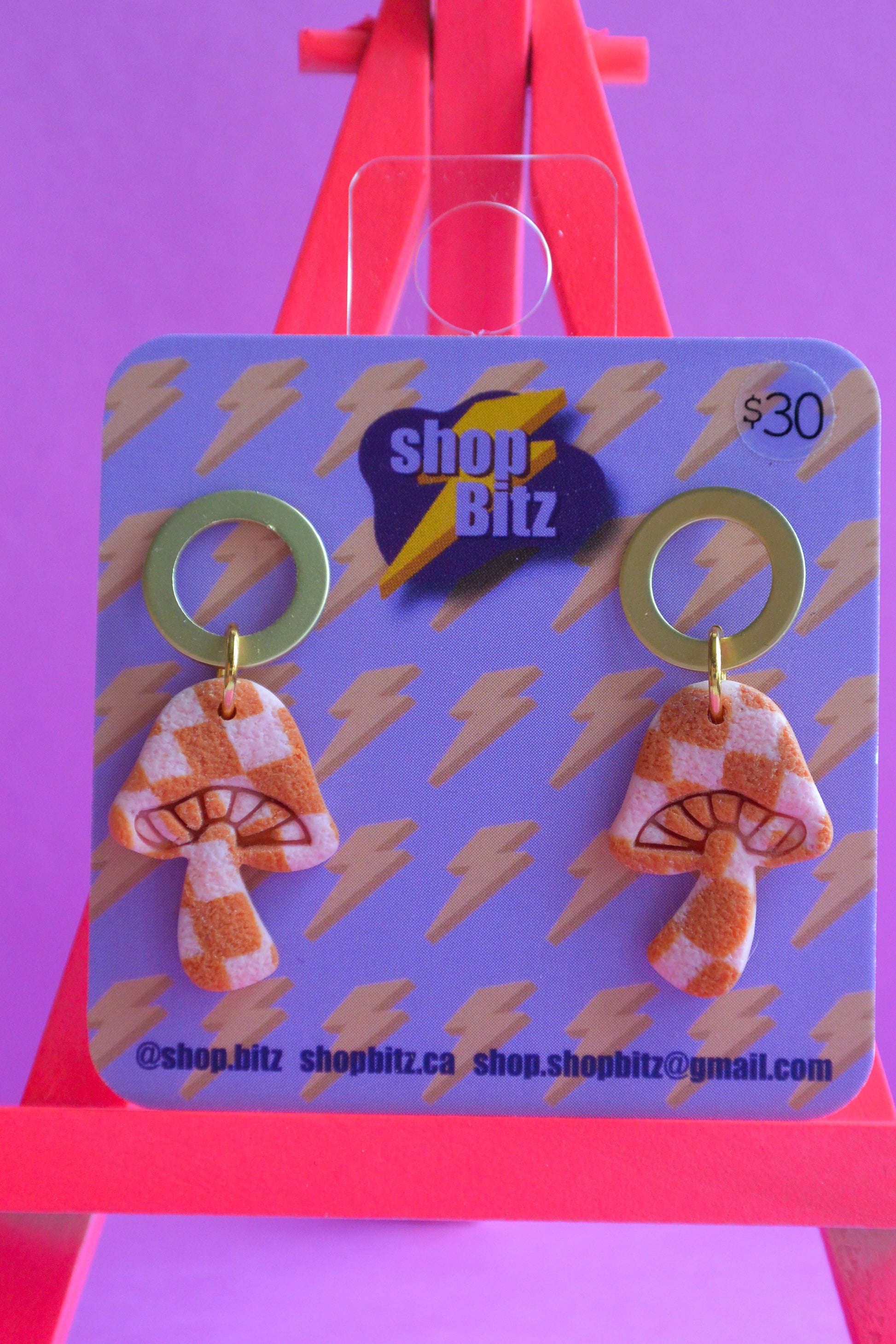 Earrings made with polymer clay, set on nickel free stainless steel findings. As item is handmade, there may be slight variations to product.