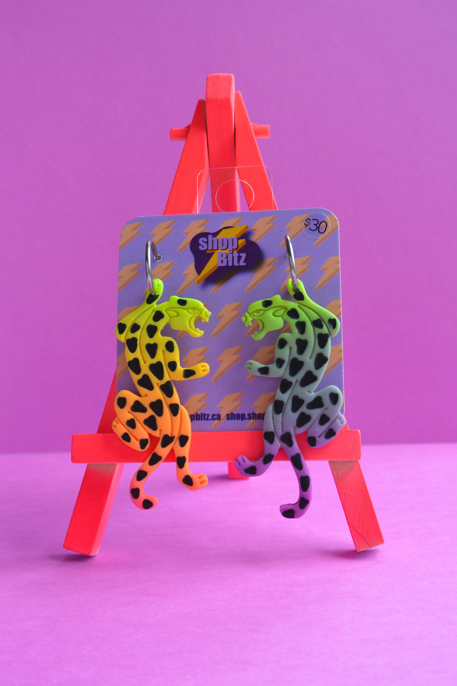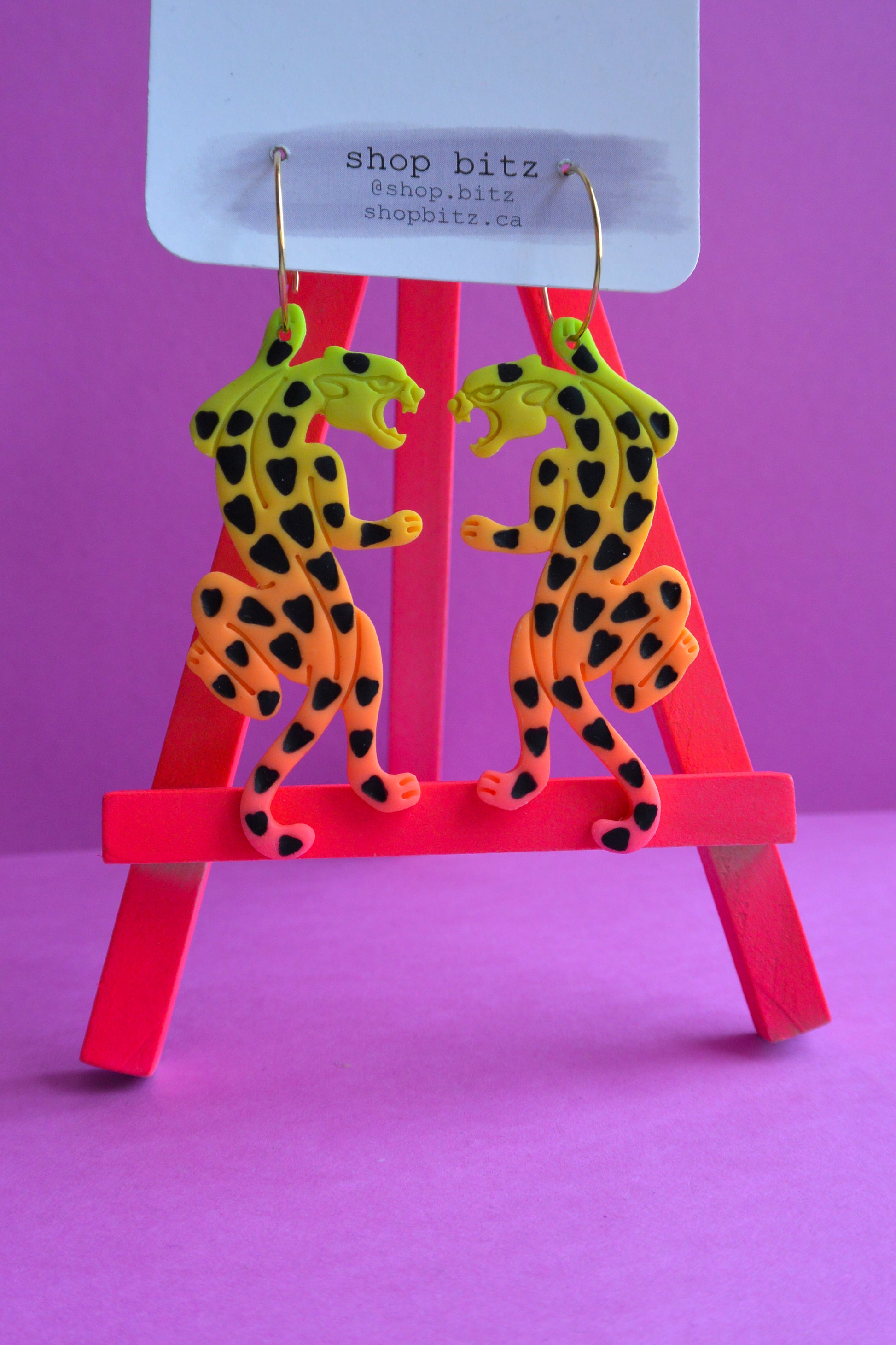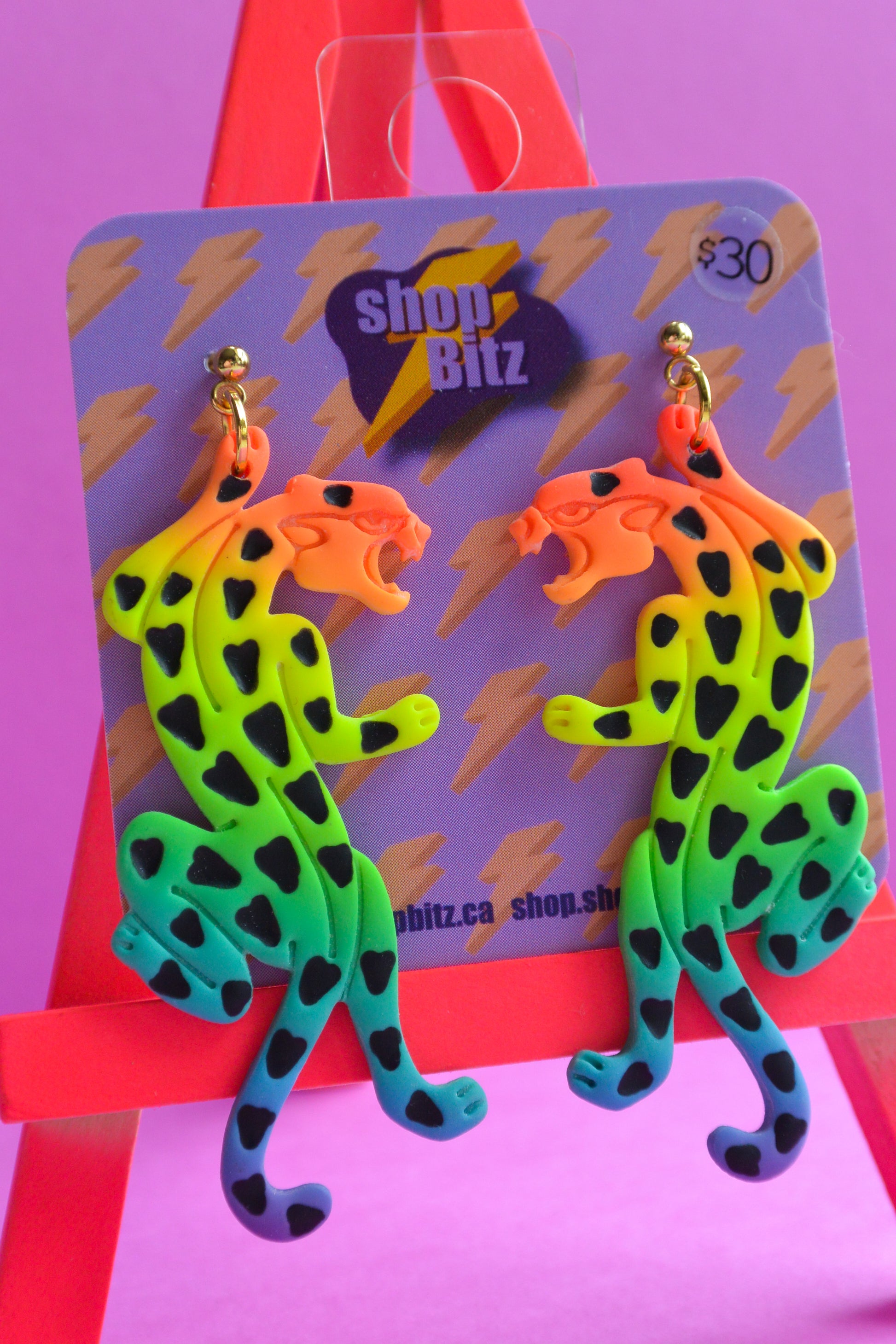 Add a burst of colour to your day with Rainbow Ombre Jaguars! These playful earrings bring a little bit of the rainbow to your wardrobe with vibrant polymer clay and nickel free stainless steel. Unforgettable and utterly unique, these earrings will make you stand out in the crowd.