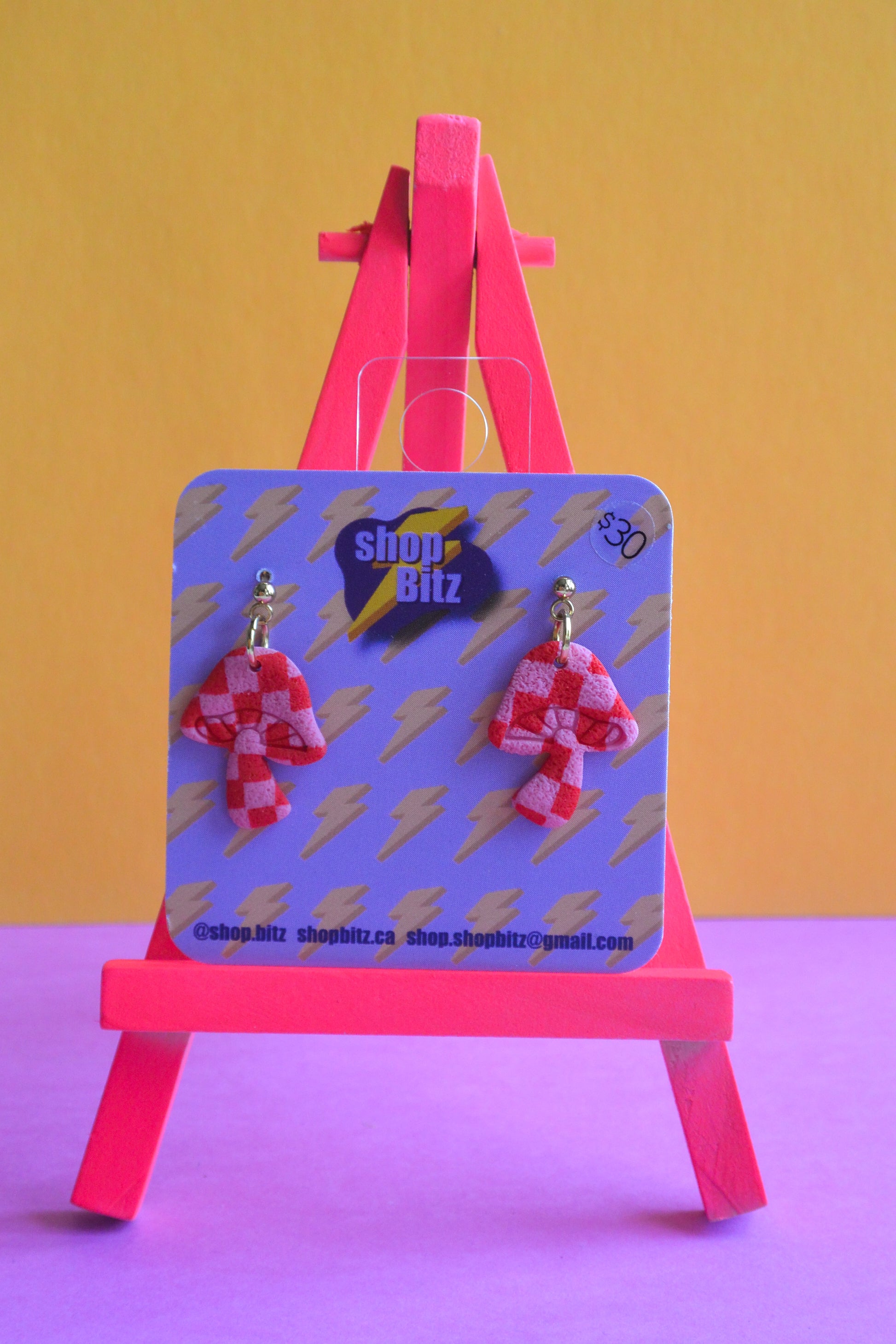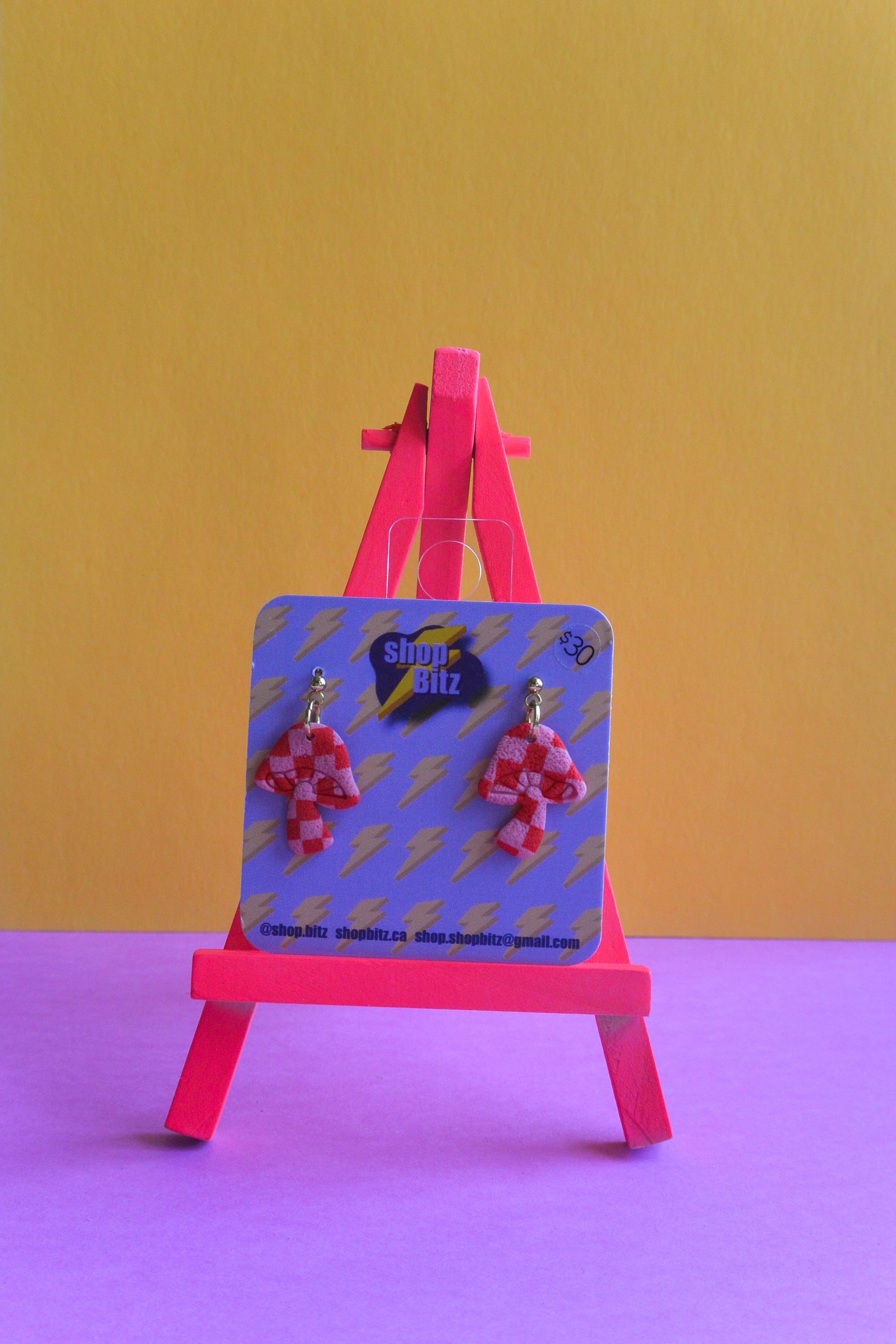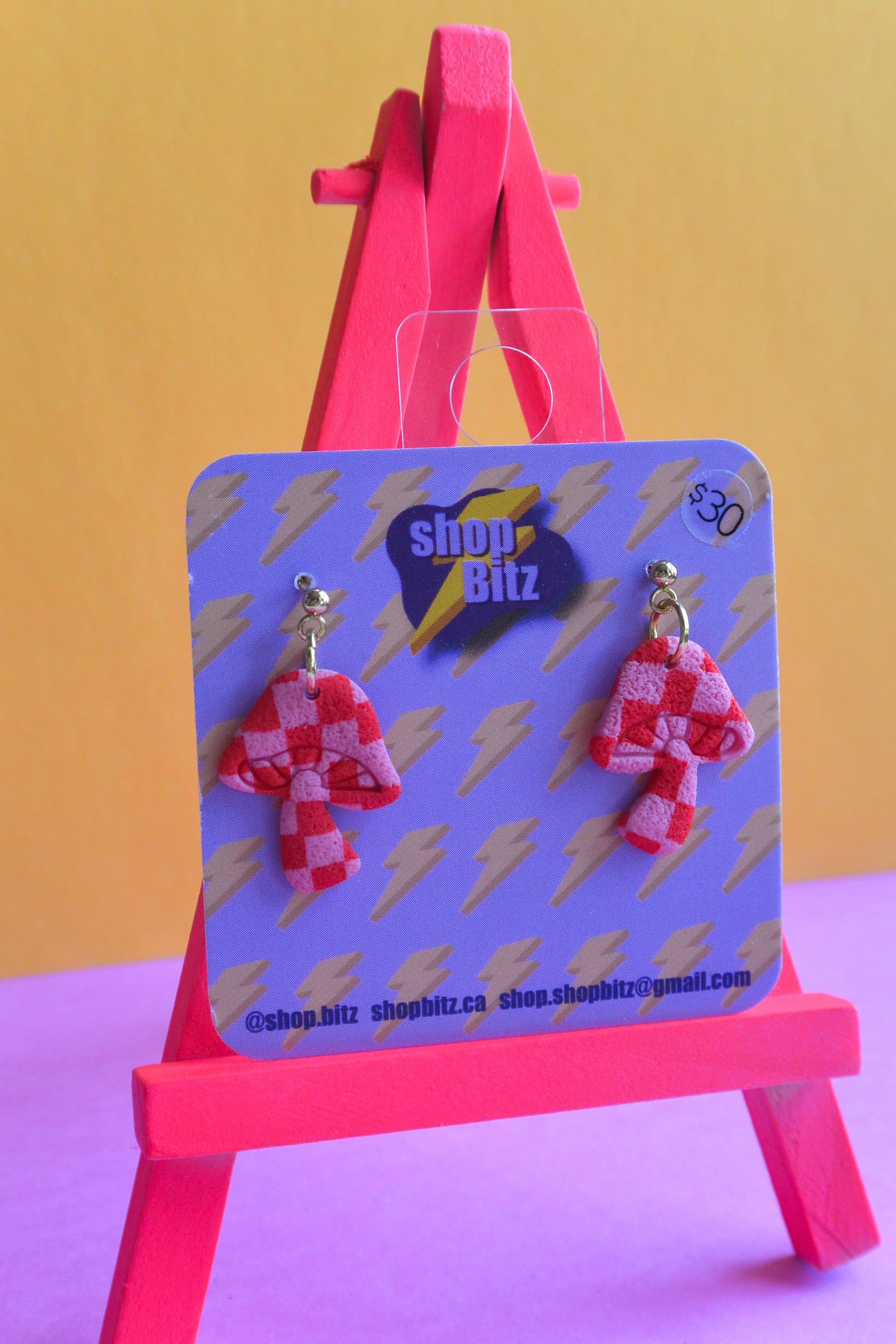 Earrings made with polymer clay, set on nickel free stainless steel findings. As item is handmade, there may be slight variations to product.