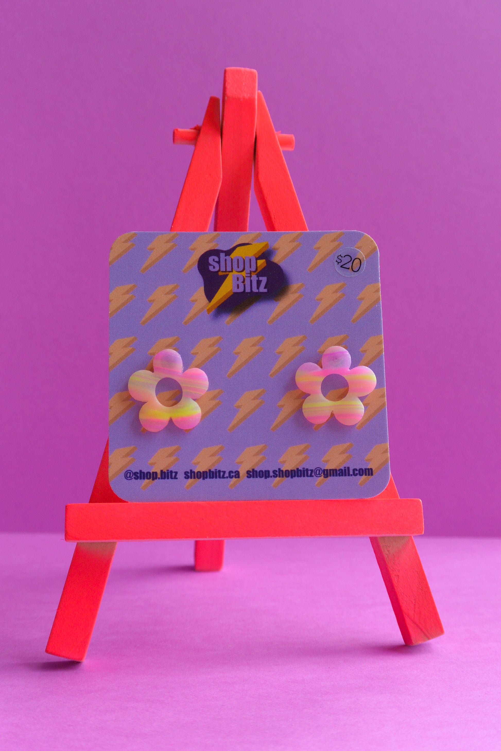 Earrings made with polymer clay, set on nickel free stainless steel findings. As item is handmade, there may be slight variations to product.