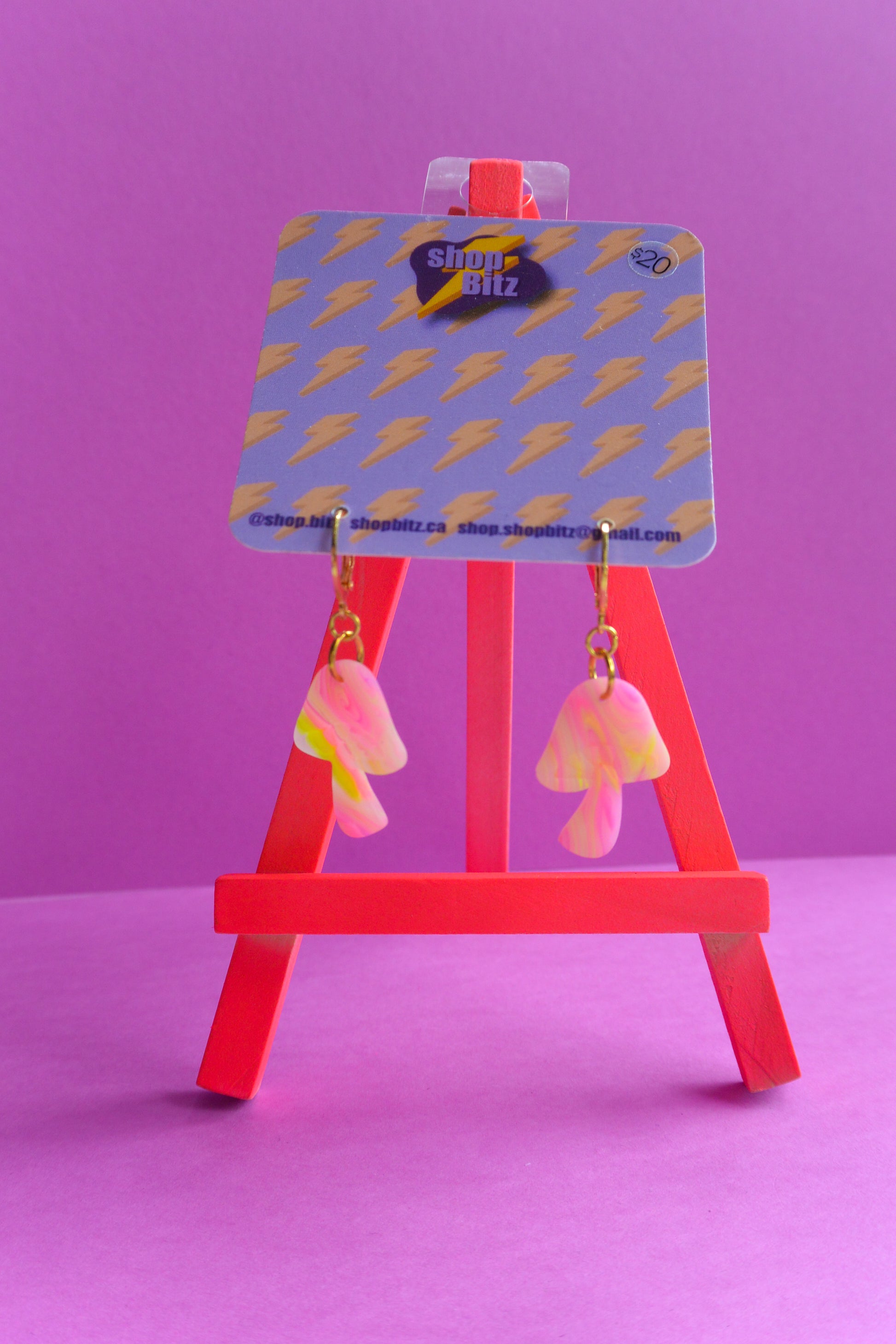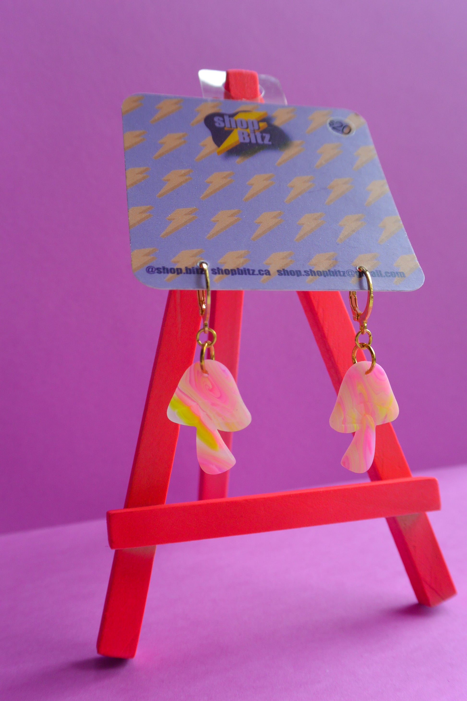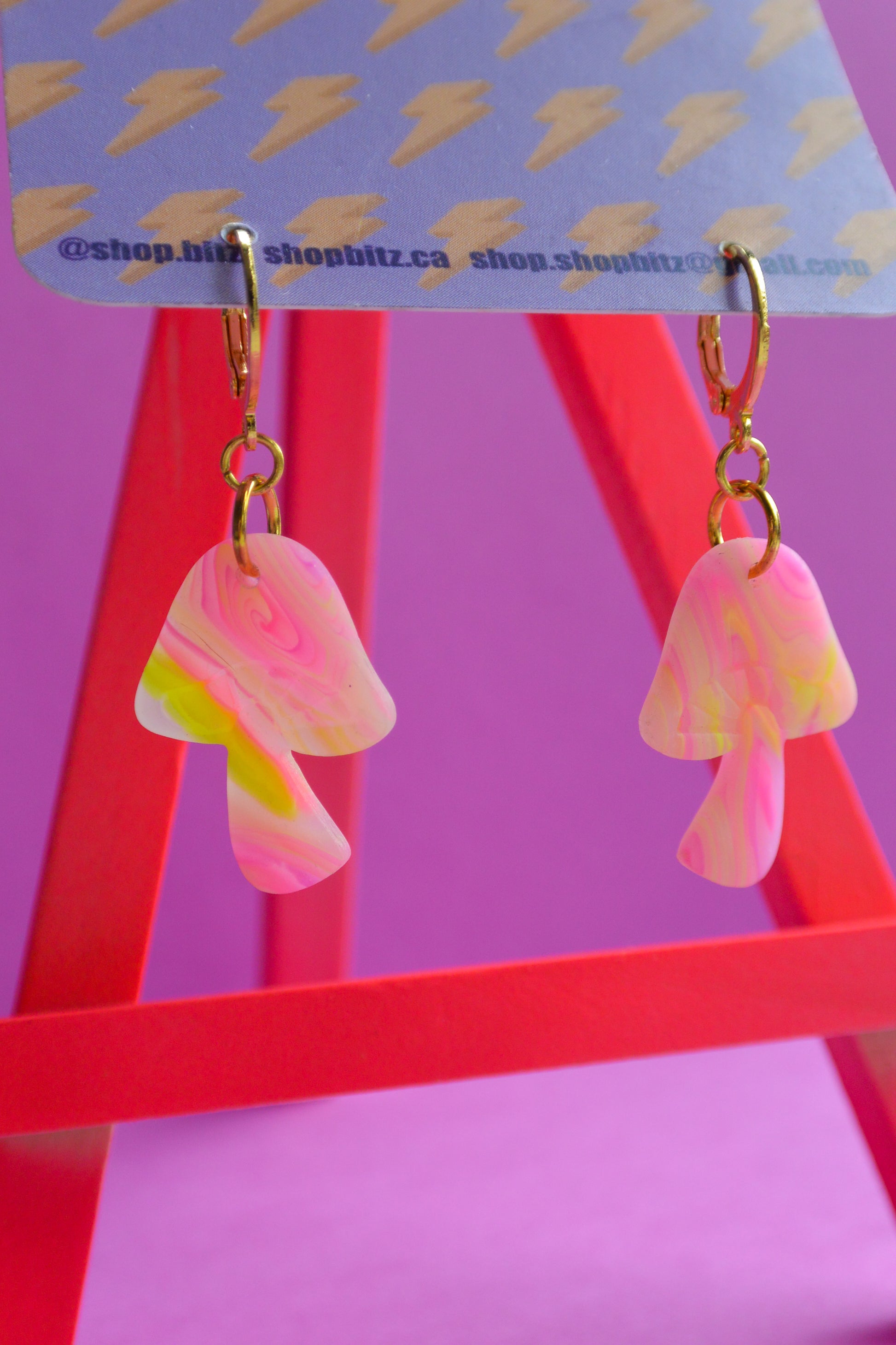 Earrings made with polymer clay, set on nickel free stainless steel findings. As item is handmade, there may be slight variations to product.